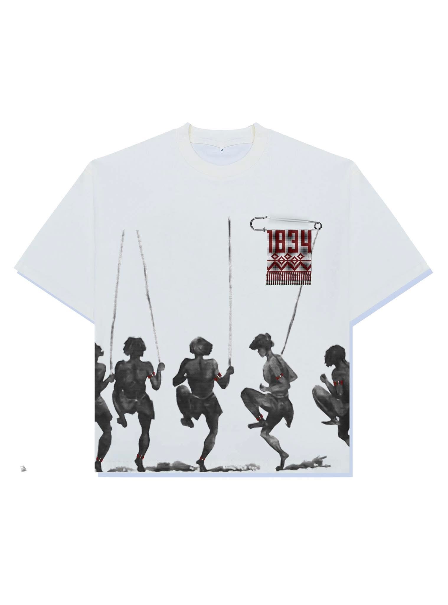 The MOHOBELO Tee captures a moment where rhythm becomes resilience. Knees lifted, sticks raised, bodies aligned in silent choreography — not dancing for applause, but rehearsing courage.